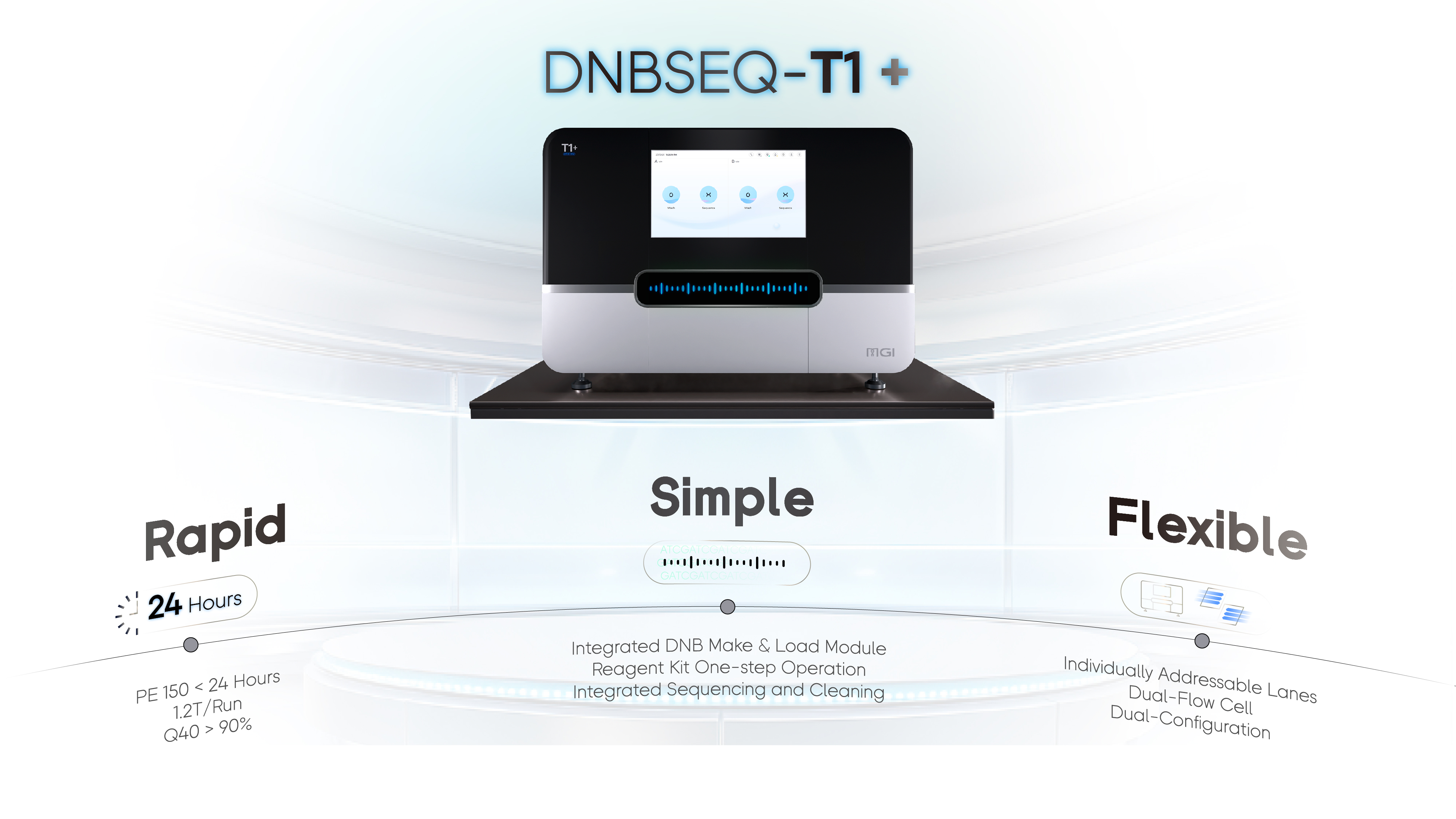DNBSEQ-T1+で新たに導入されたDNBM&L(DNB作製&ローディング)機能モジュールは、DNBの調製とローディングをシーケンサーに直接統合しています。これにより、高品質なDNBをワンクリックで作製でき、シーケンス実行の準備が整った状態で結果を得ることが可能です。DNBSEQ-T1+シーケンスシステムは、Large(大)・Medium(中)・Small(小)の3種類のフローセル仕様(FCL、FCM、FCS)を提供します。それぞれのフローセルは、異なるリード長やアプリケーションタイプを独立して実行することが可能です。そして、独立した専用のレーンローディングシステムを搭載しており、dsDNA、ssCirDNA、DNBなど、さまざまなライブラリタイプに対応しています。加えて、異なるユーザーグループ向けに最適化された2つのコンフィギュレーション、DNBSEQ-T1+ および DNBSEQ-T1+Aを。DNBSEQ-T1+A モデルには、内蔵のバイオインフォマティクスモジュールが搭載されており、特定のアプリケーション向けの高度な解析を自動的に開始することが可能です。
